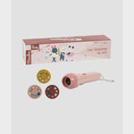 This storybook torch is not to be confused with a simple flashlight. With three discs that clip onto the end of the torch, you can project images onto the wall that inspire creative storytelling fun! Simply slot a "apres la pluie" (after the rain) disc into the storybook torch, turn out the lights, and point against a wall or ceiling to see the illuminated images. You and your little ones can use the illustrated pictures to create whimsical and unique stories - no two will ever be the same! Encourage story time and imaginative skills with this fun and compact toy.