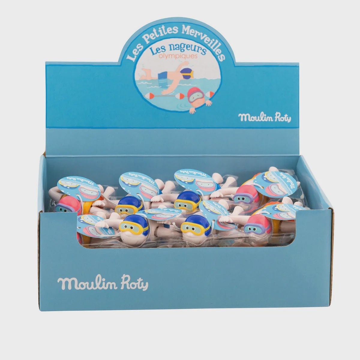 A selection of 16 plastic wind-up swimmers with swimsuits, goggles and bathing caps. Wind them up, place them in a washbasin, bath or a bowl of water and away they go! Magically transformed into Olympic swimmers! WARNING SMALL PARTS: Safety rated for ages 3+.