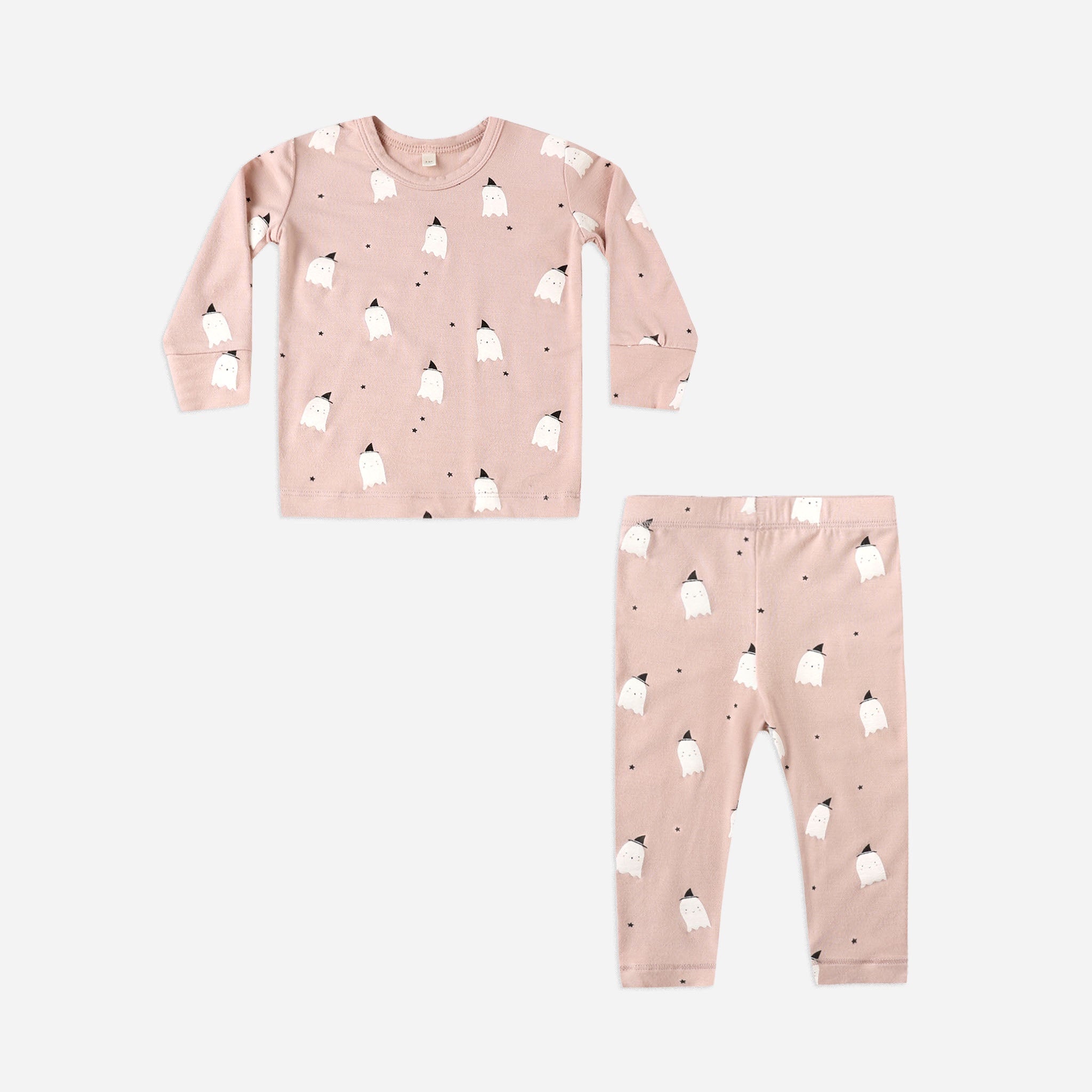 Quincy Mae - Bamboo Pajama Set - Pink Ghost