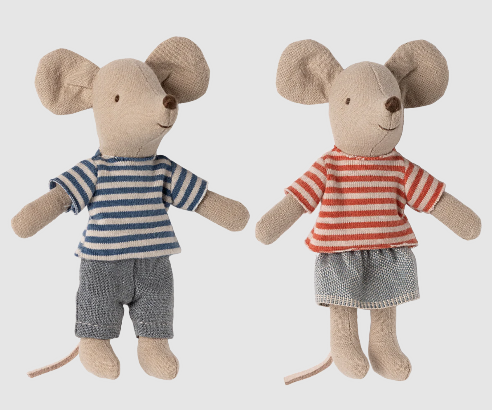Meet little brother mouse LouiMax and his sister Stella. Both wear cosy striped shirts and love spending time together in the SuitCasa, always ready for endless playful adventures. With their magnetic paws, these siblings can hold on tight to metal toys, as well as each other. They come packaged together in a mini cardboard house, making them a delightful gift and a charming collectible.