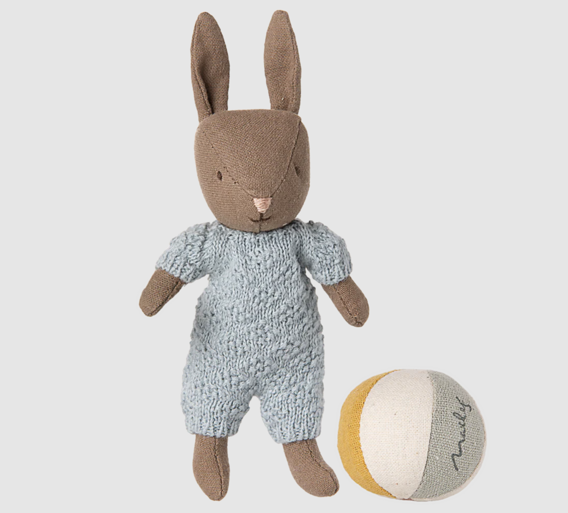 The perfect gift set to start hours of storytelling. It contains a small ball and a soft rabbit in size micro with magnets in hands. All fitted nicely together and a great start of any rabbit collection.