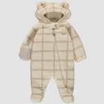 Perfect for chilly days, this cozy sherpa one-piece features a zipper for easy dressing. The hood with cute little ears adds an adorable touch, while the 100% cotton quilted jersey lining ensures maximum comfort.