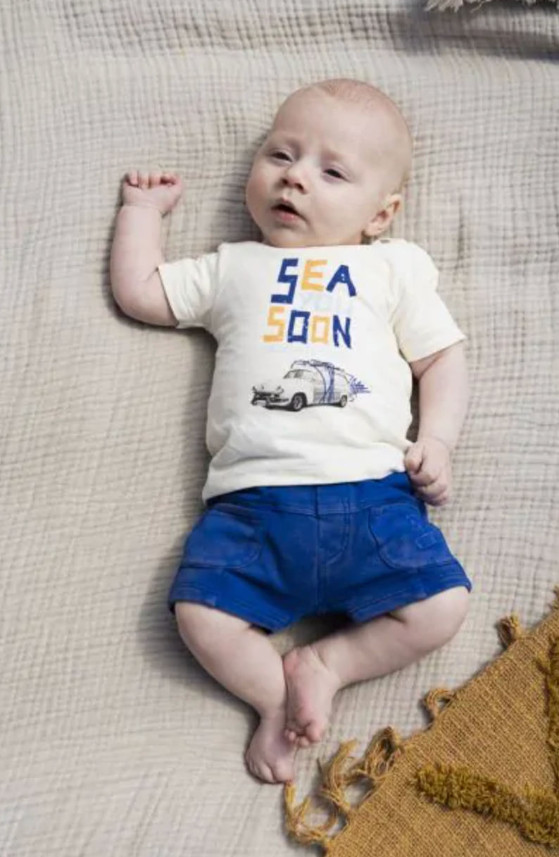 Super cool shorts from the Noppies Baby collection. The Mescal shorts feature an elasticated waist with a tie ribbon, which has been made in such a way that it can’t be pulled out whilst tightening. The pockets have resulted in an extra comfy look. The stretch in the soft cotton has made them lovely and comfy for your little one. This item has been given a special washed effect, which has given it this unique, cool look. Please note: make sure you wash this item separately once before use. That’s because it may stain lighter materials to start with. This item is made from responsibly produced cotton, the Better Cotton Initiative. Not just lovely for you or your little one, but much better for the producers and the environment too. The ‘Better Cotton Initiative’ is a special training programme for farmers to make cotton production more sustainable. The BCI has taught them, for example, how to produce cotton using less water, chemicals and pesticides.