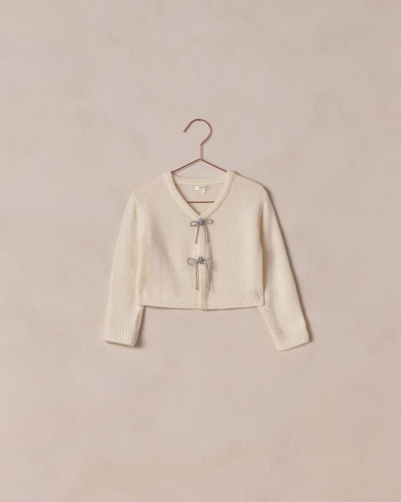 This classic pointelle knit sweater was crafted to hit at the waist and can be layered over any dress. Its oversized knit collar and embellished buttons will have your little one warm and stylish.