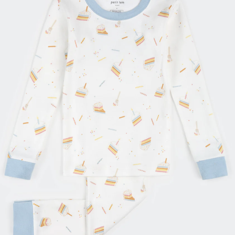 Petit Lem - Birthday Cake Print on Off-White PJ Set