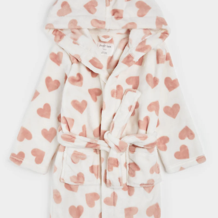 Petit Lem - Heart Prints on Ivory Plush Robe