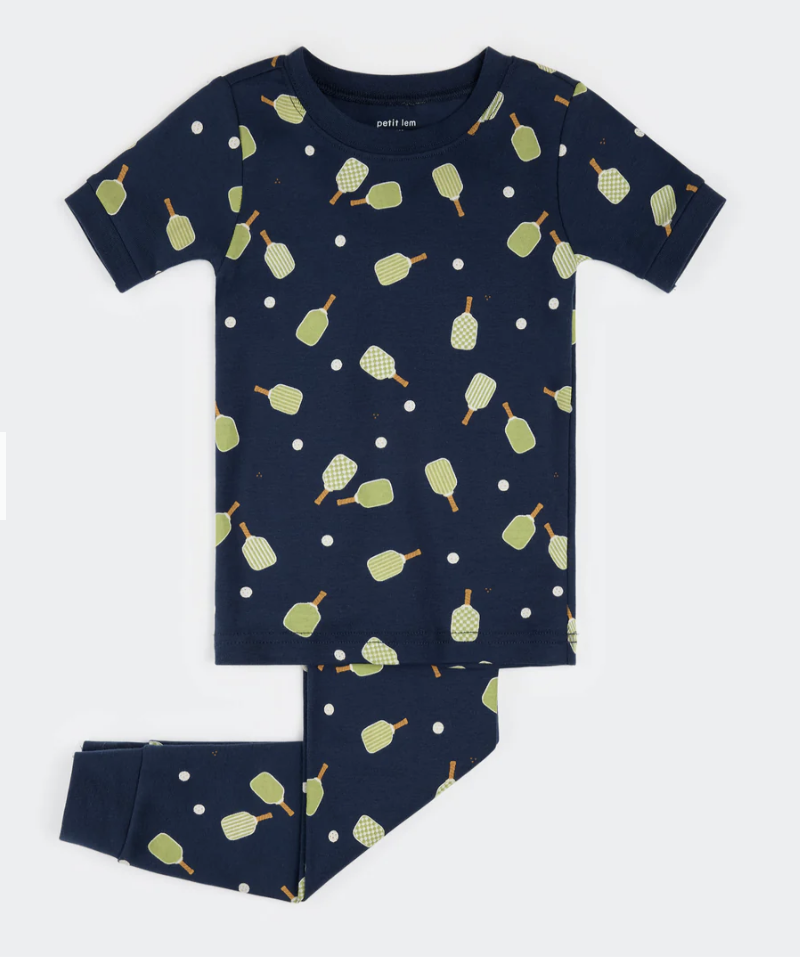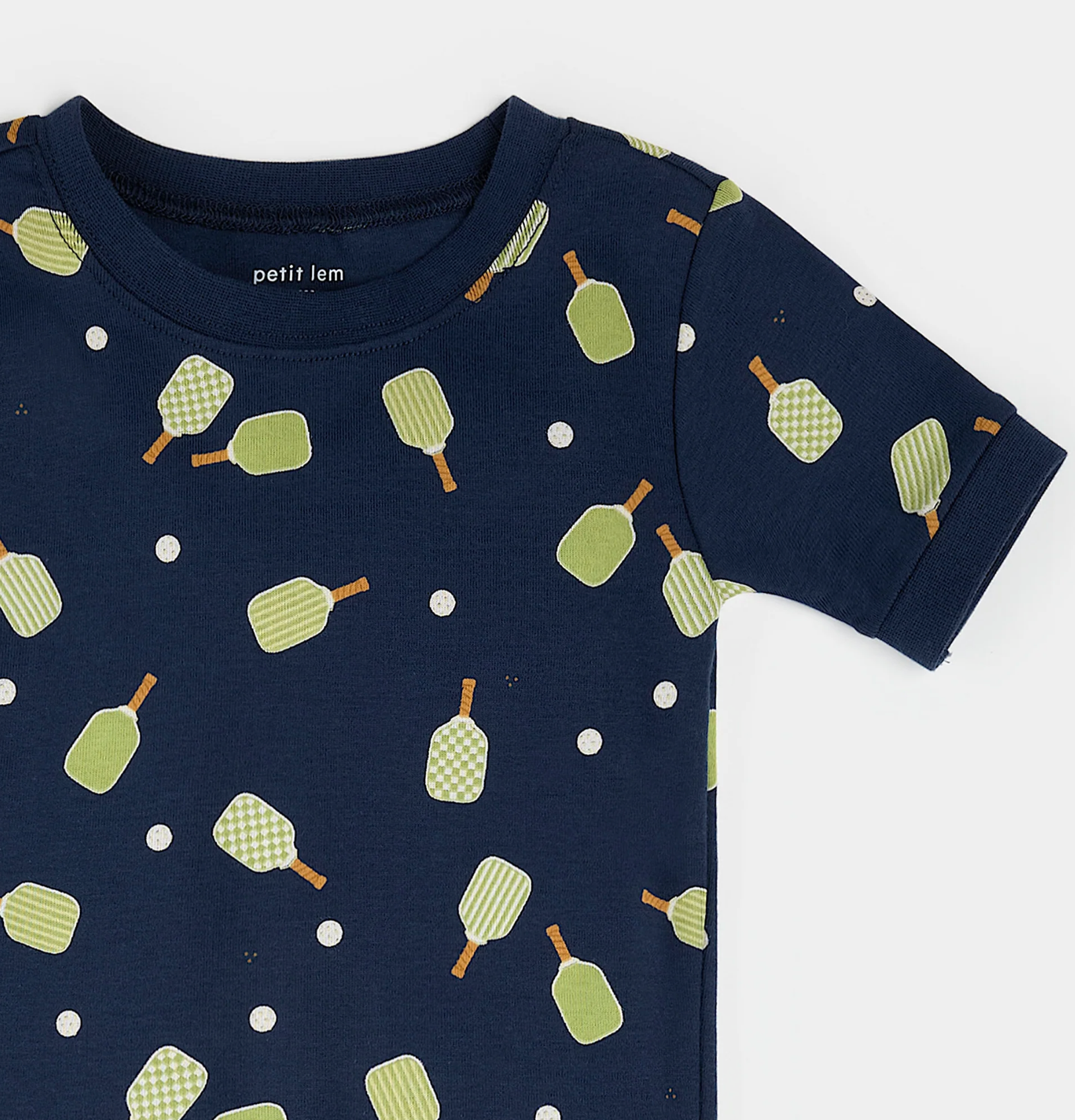 Petit Lem - Pickleball Print on Dress Blue Short-Sleeved PJ Set
