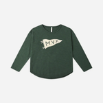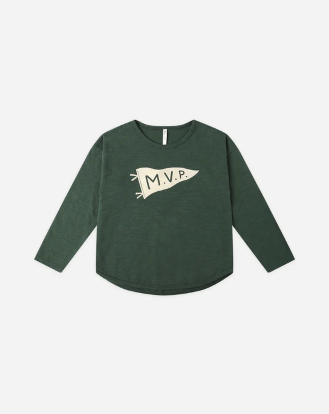Relaxed-fit long sleeve crewneck tee featuring a gently curved hemline. Shoulder snaps included on sizes 0-3M - 18-24M for easy changes.