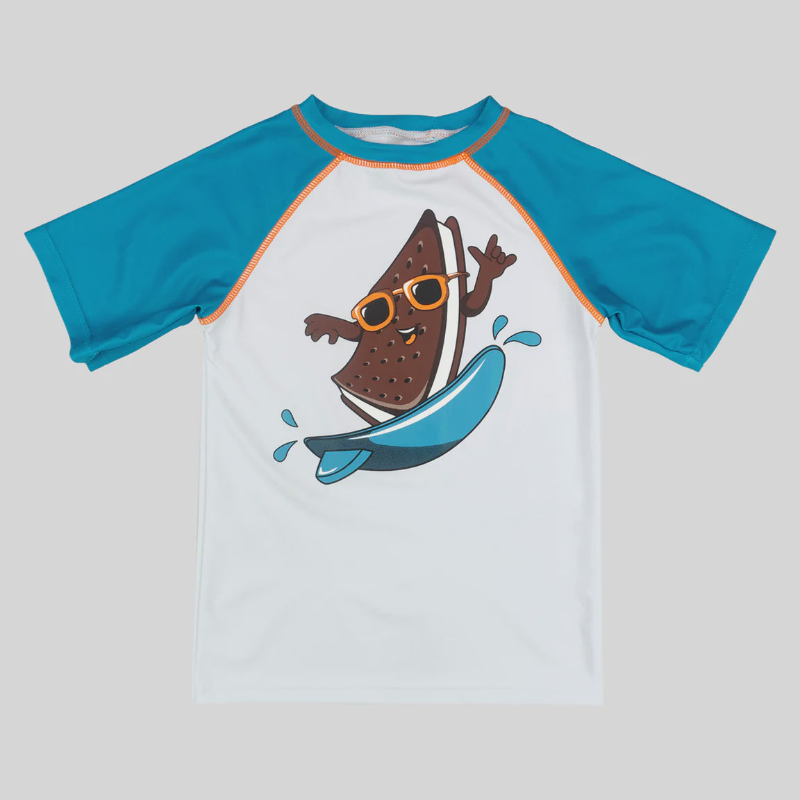 A surfing ice cream sandwhich? What in the world? Prepare your little for big waves at the beach. Pair with the Ice Cream Sandwich swim trunks!