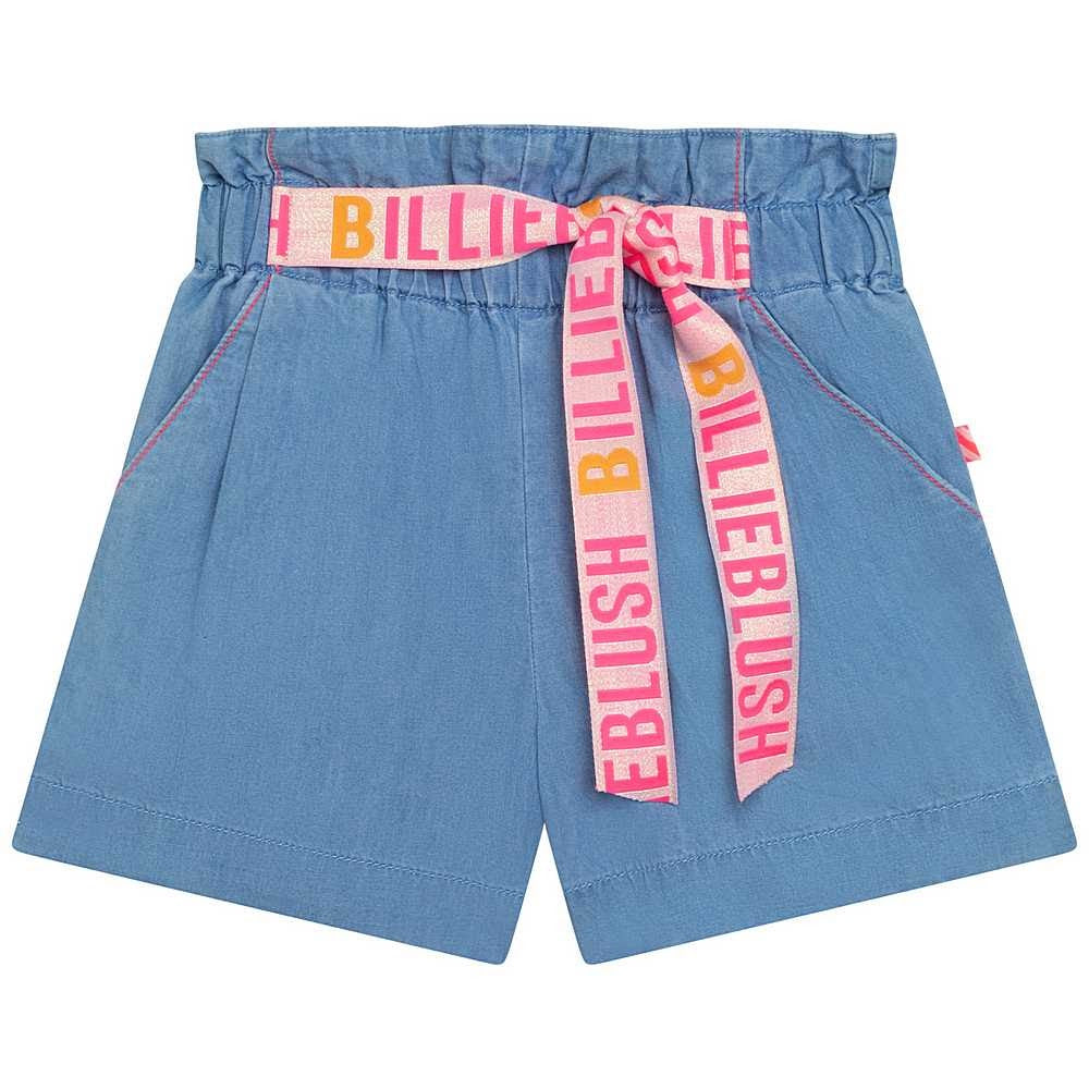 Billie Blush - Chambray Shorts with Logo Ribbon - Denim Blue