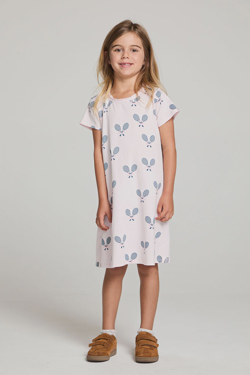 Featuring a charming crossed rackets motif, a loose and comfortable fit, and a playful swinging skirt, this dress is perfect for romping around.
