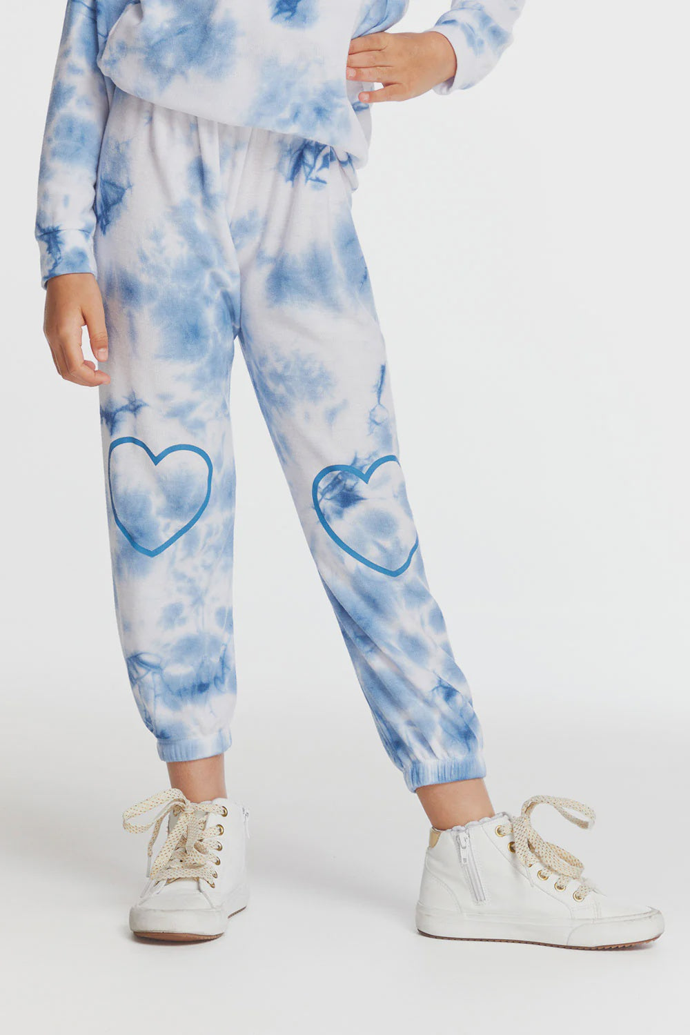 Chaser - Tie Dye Cozy Knit Heart Sweatpants - Denim