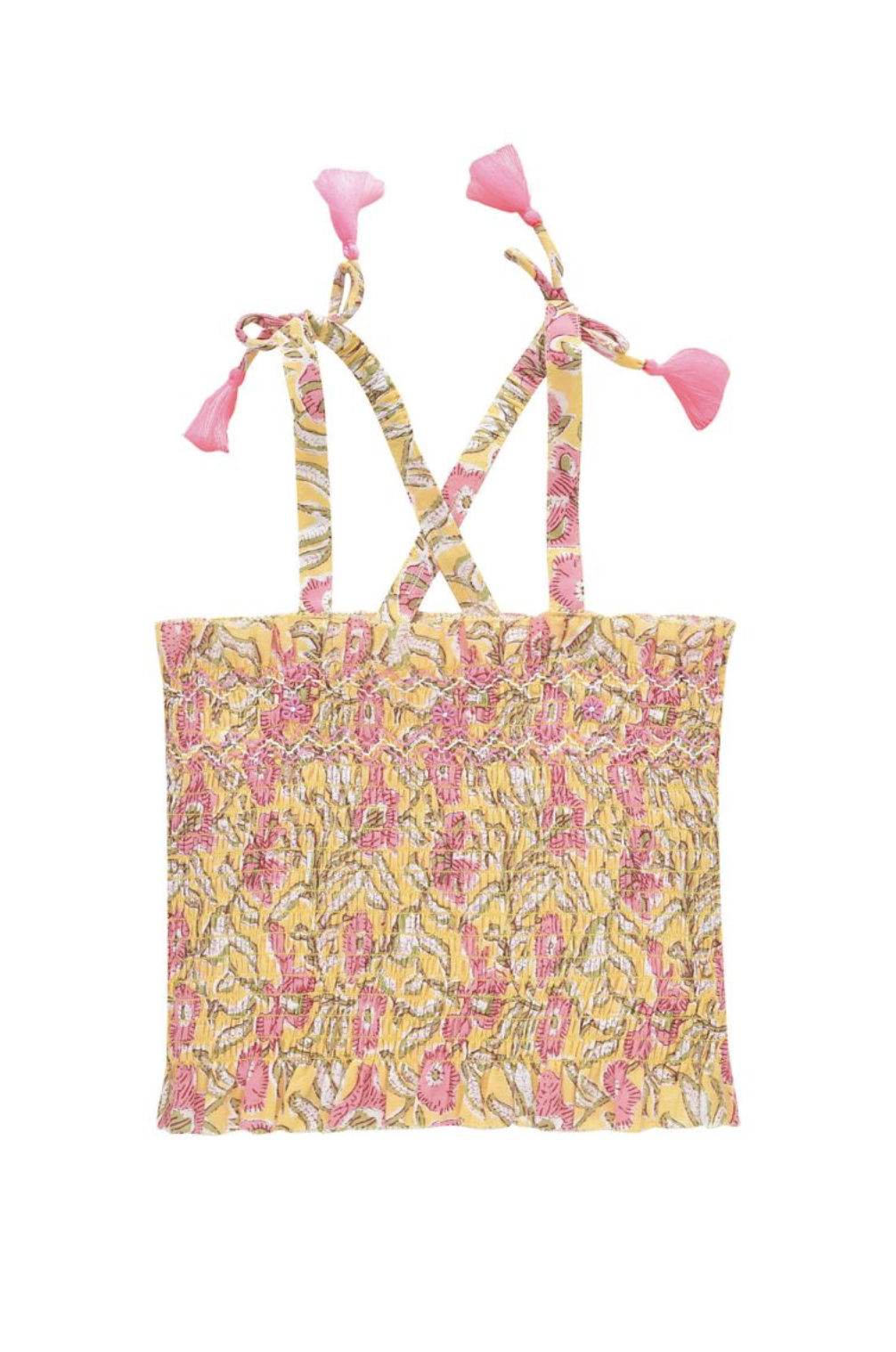 One of Louise Misha's iconic models, the Malika top returns this summer enhanced with three of this season's signature prints. Fully smocked and cut in a crop top style, it beams with an inviting holiday look!
