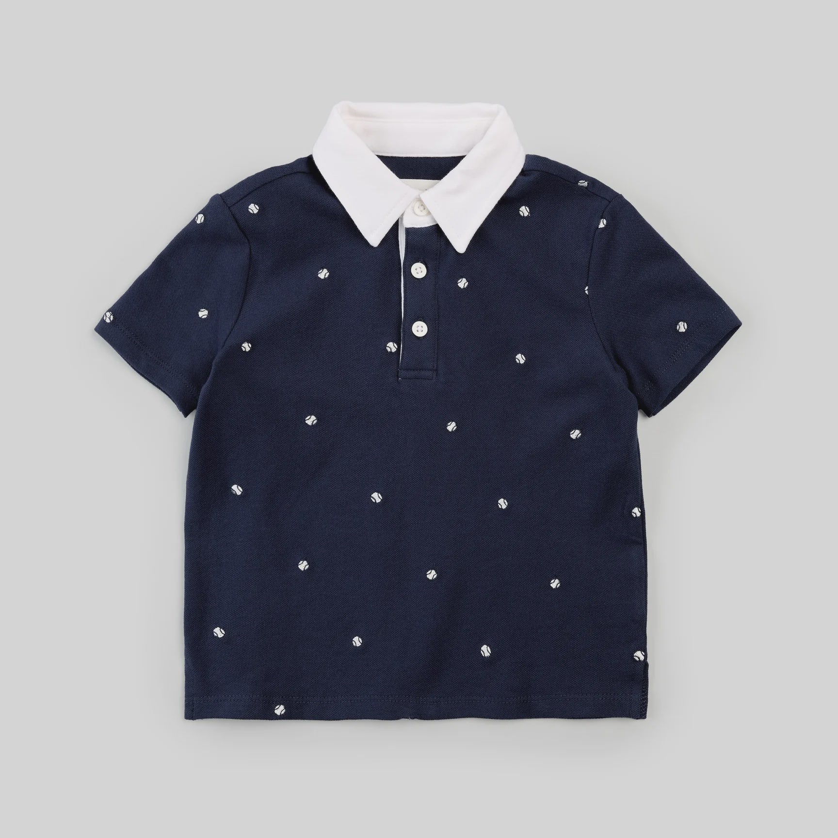 Perfect for court side, this pique polo features embroidered tennis balls and is finished with a crisp white collar. With a chic style, the top is perfect for dressing a little smarter for family days out. Made from organically grown cotton pique with a little elastane, the shirt is light and breathable while still providing a sophisticated fit.
