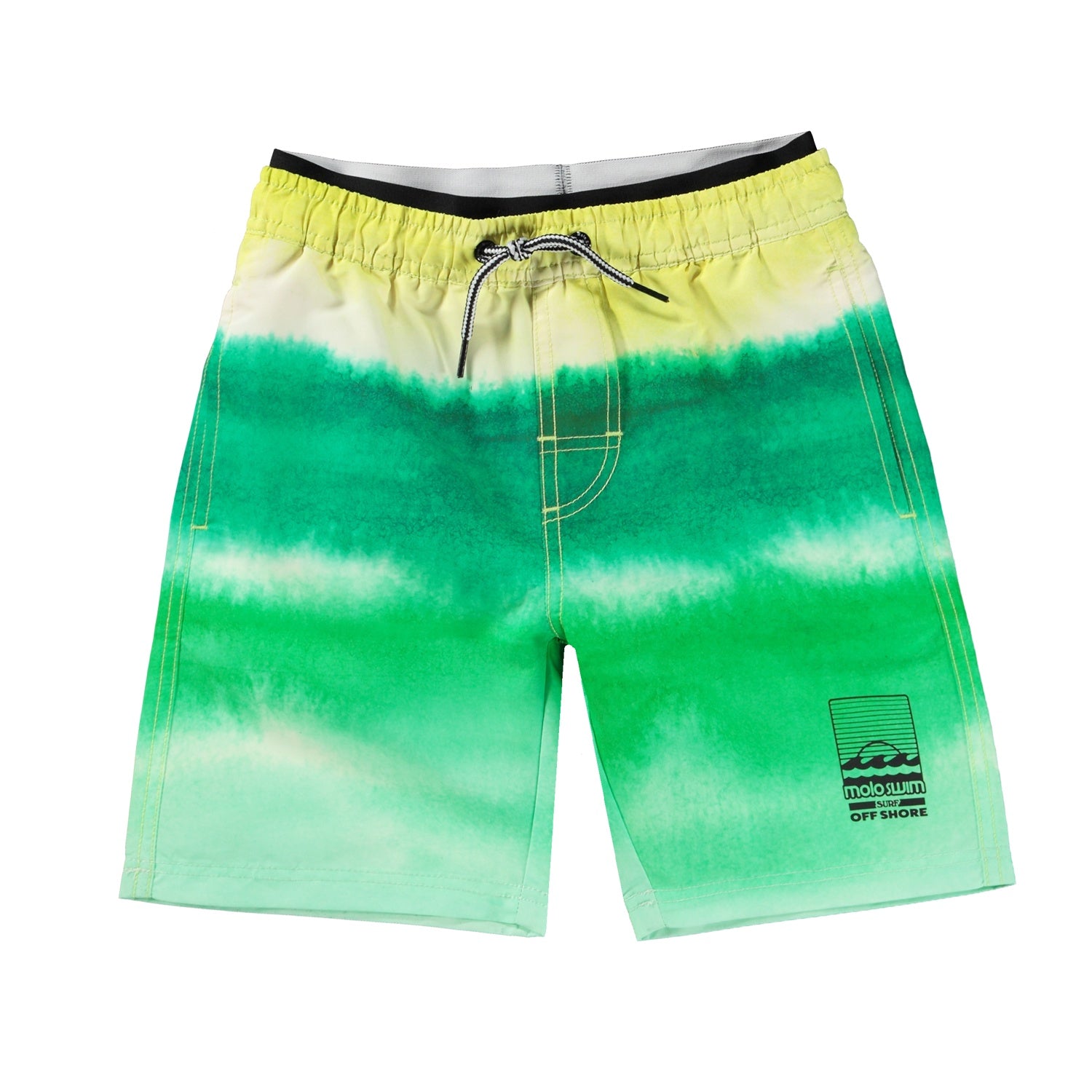 Neal is a new pair of Molo swim trunks with a longer, looser fit in a print of the shore, palm trees and surfboards. Neal has an elastic waistband with a cool, printed logo. Molo's swimwear has a UV protection of 50+. This Molo product is recycled and made from REPREVE reusable polyester. REPREVE is the leading, most trusted brand in reusable fibres and is made from used plastic bottles and other waste. The production of recycled polyester utilises far fewer resources and emits less CO2, making Molo’s recycled swimwear a sustainable choice.