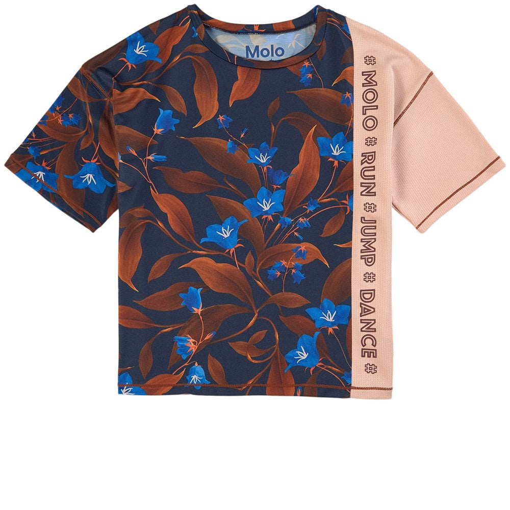 Odessa is a floral t-shirt in a comfortable, wide fit. The t-shirt has a wide, coral coloured stripe on each sleeve. Odessa is a part of Molo's new sports collection, which seamlessly unites fashion and sports. The top is comfortable and constructed in technical materials that make it appropriate for both intense activity and relaxed moments. Molo’s sports collection is made with a unique, high-performance technology called HeiQ Smart Temp, which supports the body’s natural ability to cool itself down. • The cooling function is activated when you are warmand sweating. • The cooling function becomes deactivated when the body has cooled down. • HeiQ Smart Temp ensures optimal performance and comfort. • Independently tested for skin safety. • The technology is Oeko-Tex certified.