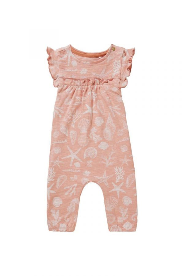 Deep in the sea. . . The Cedar Jumpsuit from the Noppies Baby collection is a beautifully lightweight outfit for hot summer days. The jumpsuit features handy shoulder press studs and inside leg buttons, which will make changing your baby's clothes and nappies much easier. And how cute are those ruffle details? The stretch in the soft cotton provides added comfort and gives your tiny tot plenty of freedom of movement. This key look item from the Noppies Baby collection is a must-have for your baby's wardrobe! Would you like to find other lovely garments in this print? Shirts and trousers in this cute shell print are also available!