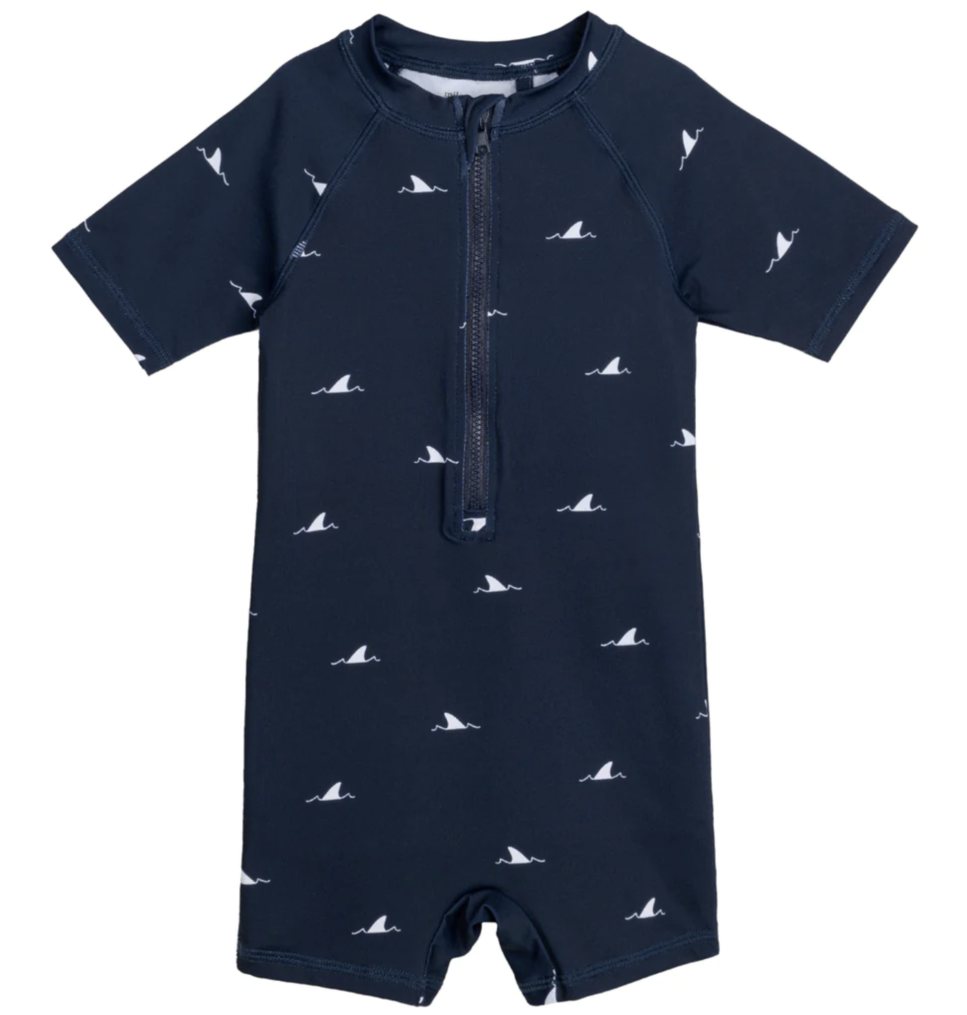 Petit Lem - Short Sleeve Swim Romper - Navy Shark