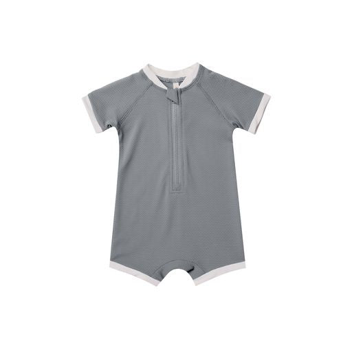Our one-piece rashguard swimsuit will have your little one protected from the sun in style. Featuring a zipper along the front for easy changing.