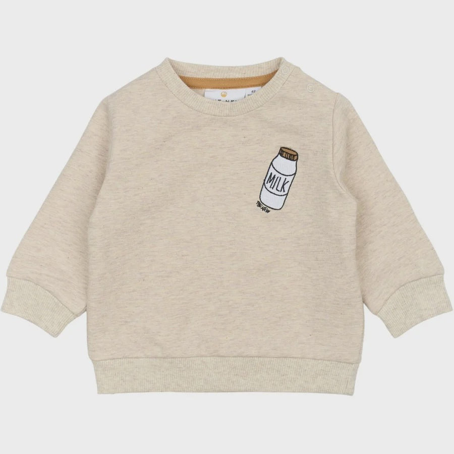 Charming baby sweatshirt with an embroidery on the chest of a milk bottle. This sweatshirt is perfect for everyday wear and weekend comfort.