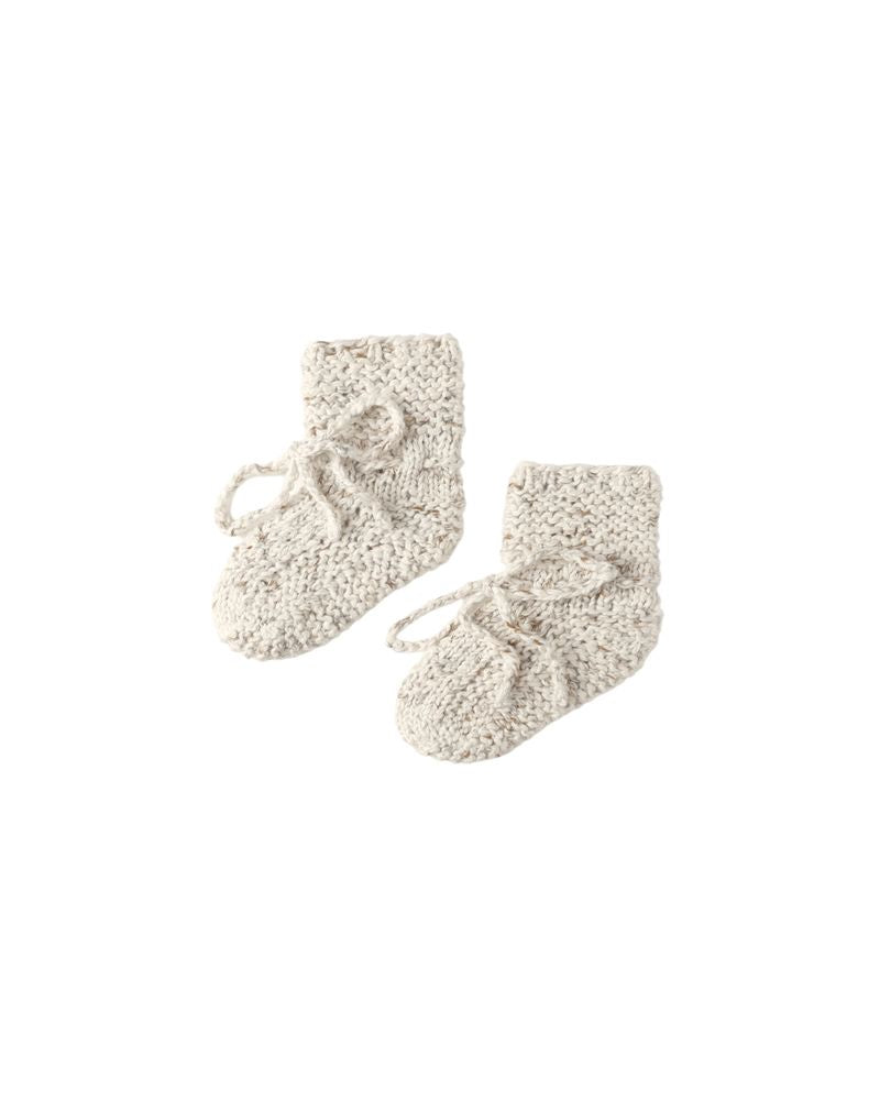 Adorable knit booties with ties at the ankle for a snug, secure fit.