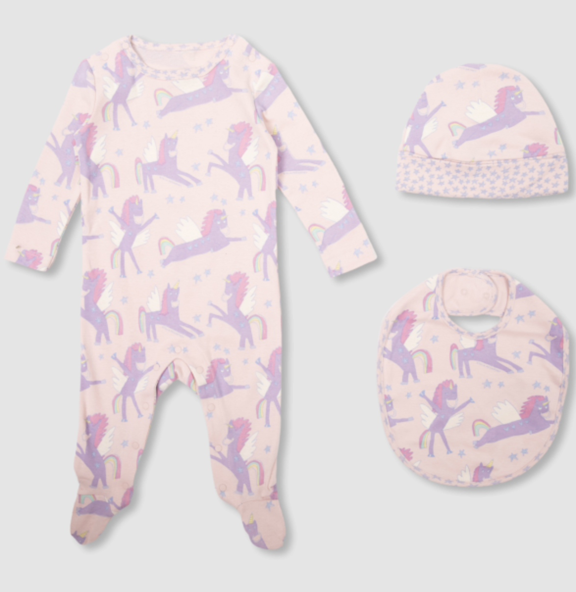 Stella McCartney - Unicorn Footie Set with Hat & Bib - Pink