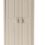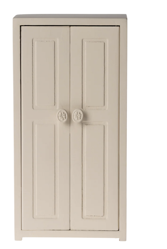 A small closet helps the mice family organize their wardrobe. The closet comes with three golden hangers.