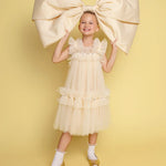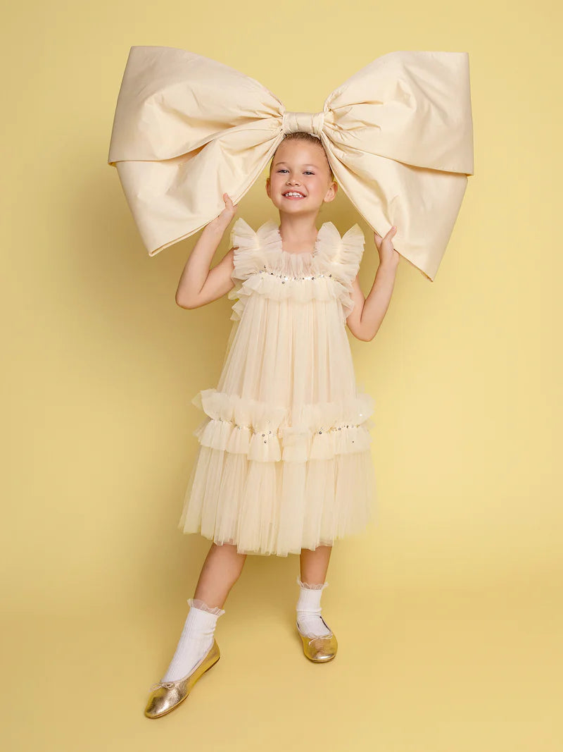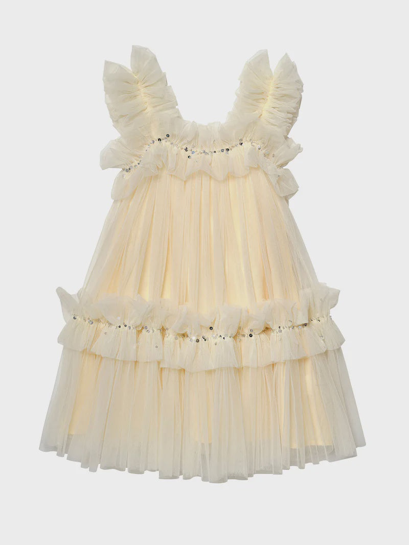 The Petit Four Tulle Dress in Daffodil is a delightful sweet treat from our Spring Summer Collection! This enchanting dress boasts an oversized A-line cut that creates a stunning silhouette, allowing for plenty of twirl-worthy moments. Oversized frills cascade along the straps, neckline, and skirt, while delicate sequins dance throughout adding a sprinkle of sparkle. Perfect for little fashionistas who have a taste for elegance!