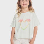 Get ready for a tropical adventure with our funky Pink Palms Heart girls tee!