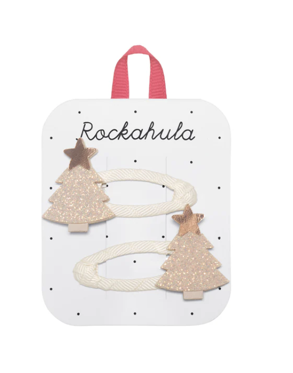 Glisten your way through the Christmas season in these sweet Christmas tree clips! In shimmering pink glitter, with PU star toppers, each tree is secured to an ivory ribbon wrapped snap clips.
