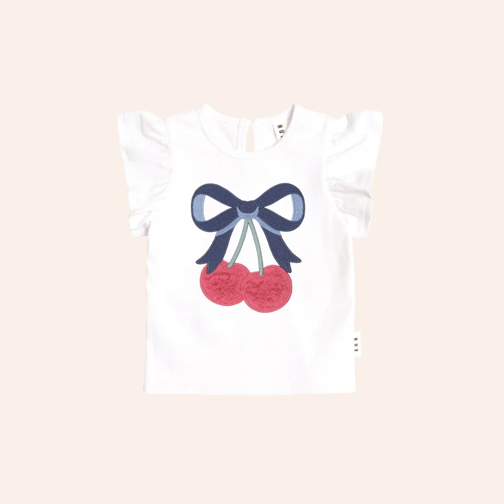 Hux - Cherry Bow Frill Sleeve Tee