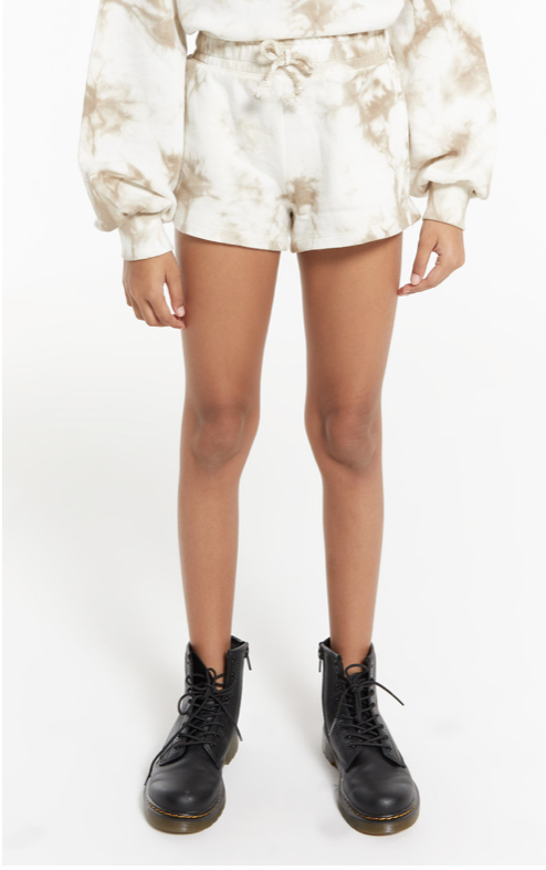 Our popular 100% cotton French Terry knit fabric was used to create the Girls Ariel Tie-Dye Short. Featuring a washed tie-dye pattern with a relaxed fit, elastic drawstring waistband and small side slits