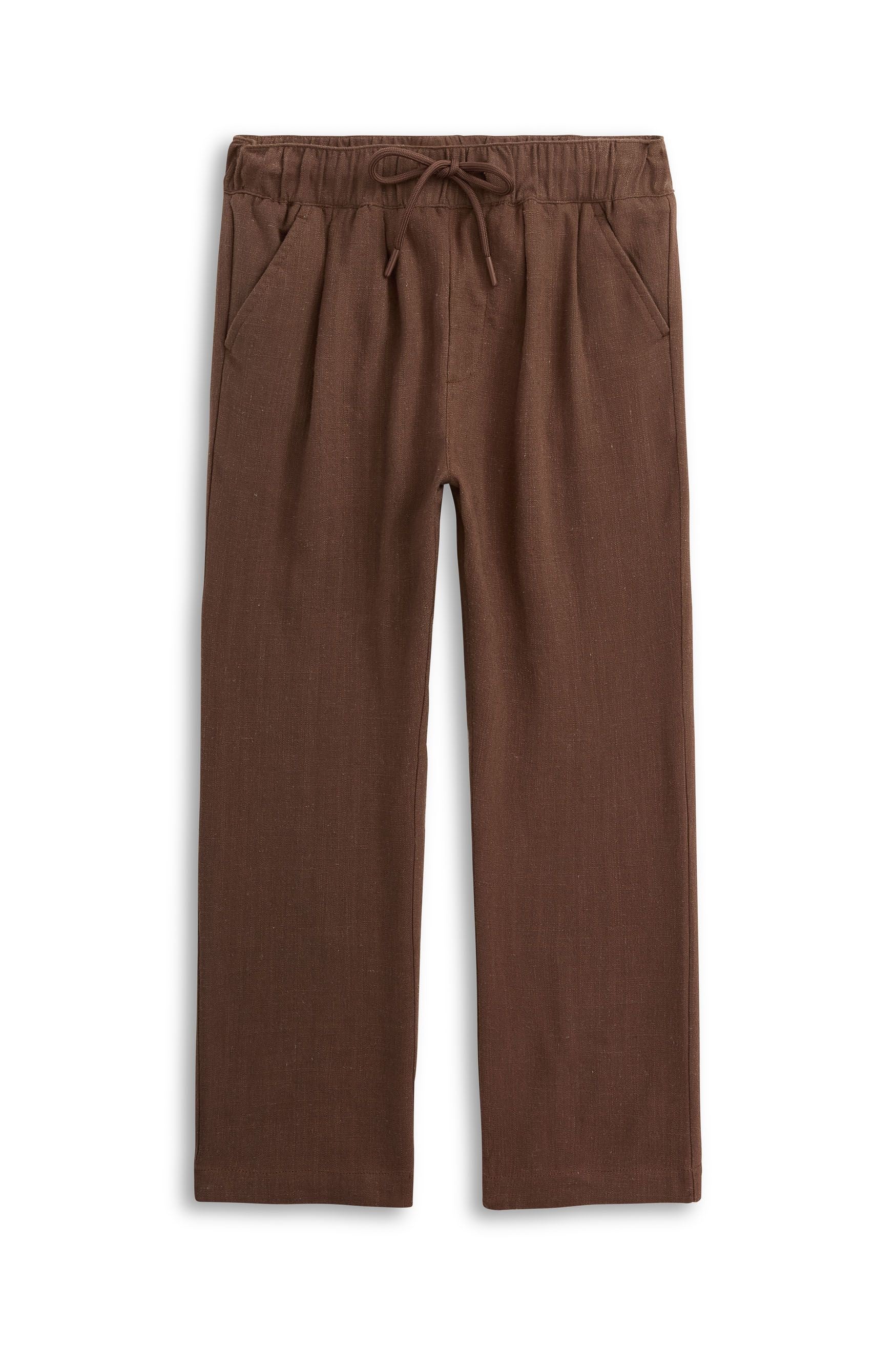 The Brown Linen Resort Pants is made for warm days and easy dressing. Designed in a breathable linen blend, this pull-on pant features a comfortable drawstring waist plus front and back pockets for everyday essentials. Polished enough for outings, comfortable enough for play and an effortless summer staple parents love.