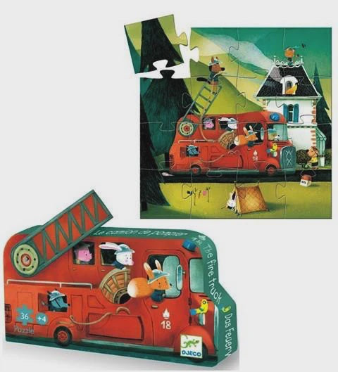 djeco silhouette puzzle - the fire truck - 16 pcs