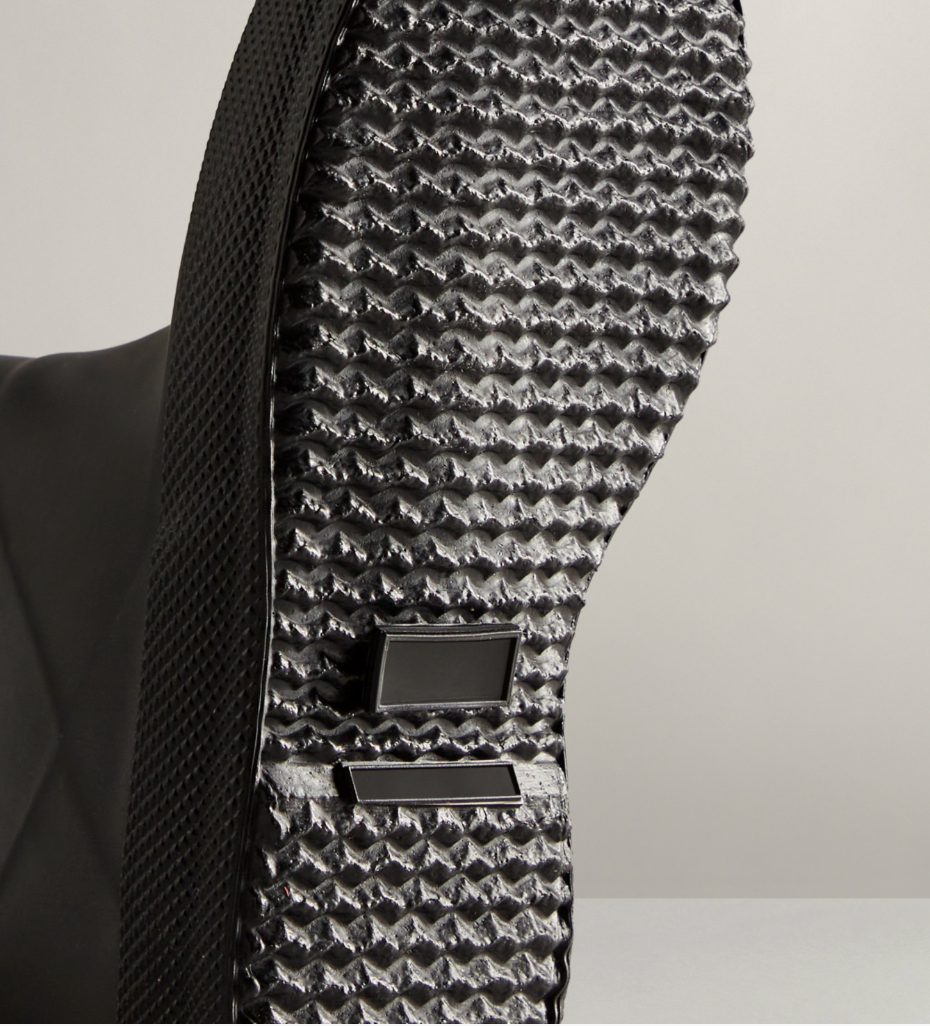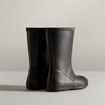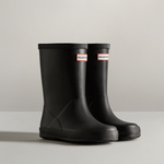 Finished in a black matte, the Hunter Kids First is a specialised welly. A flatter sole and rounder toe gives little feet room to move and the soft cotton lining ensures complete comfort for every adventure. Fully handcrafted, they feature a specially developed tread to reduce slipping.