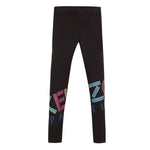 girls black leggings by Kenzo Kids with a colourful logo print. They are made in comfortable cotton jersey with an elasticated waist.
