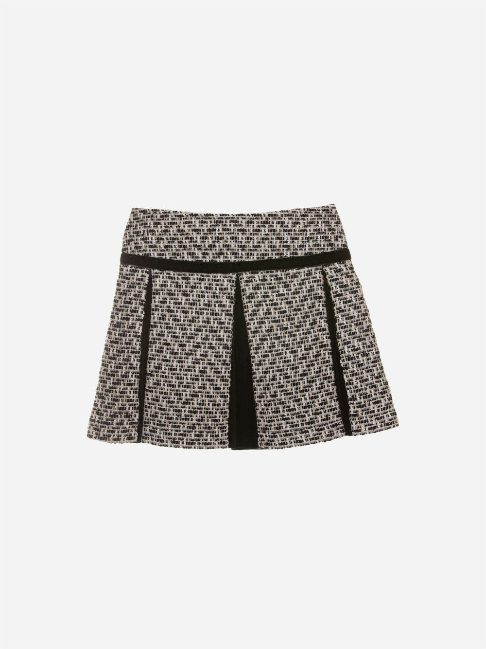 Patachou - Pleated Tweed Skirt - Black Ivory