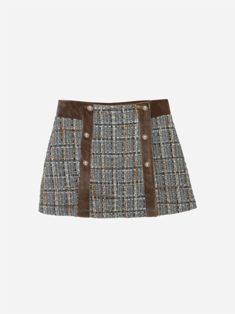 Patachou - Velvet Tweed Skirt w Pearl Buttons - Grey Ochre