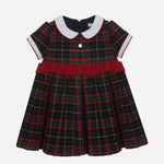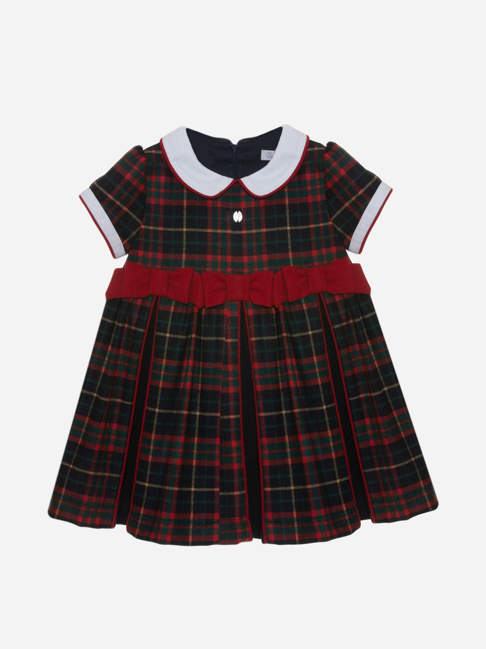 Patachou - Tartan Puff Sleeve Bow Dress - Navy