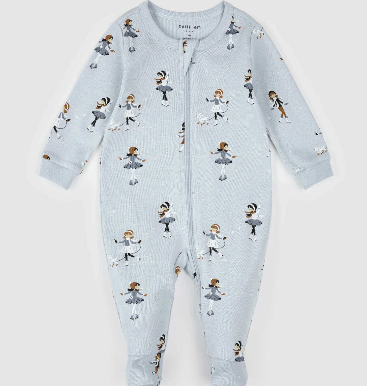 Petit Lem - Figure Skating Print on Pearl Blue Sleeper