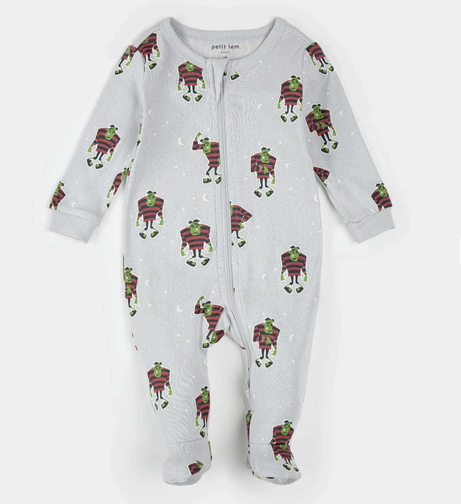 Petit Lem - Frankenstein Glow in the Dark Print Sleeper - Light Grey