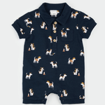 Petit Lem - Pups at Work on Dress Blue Romper