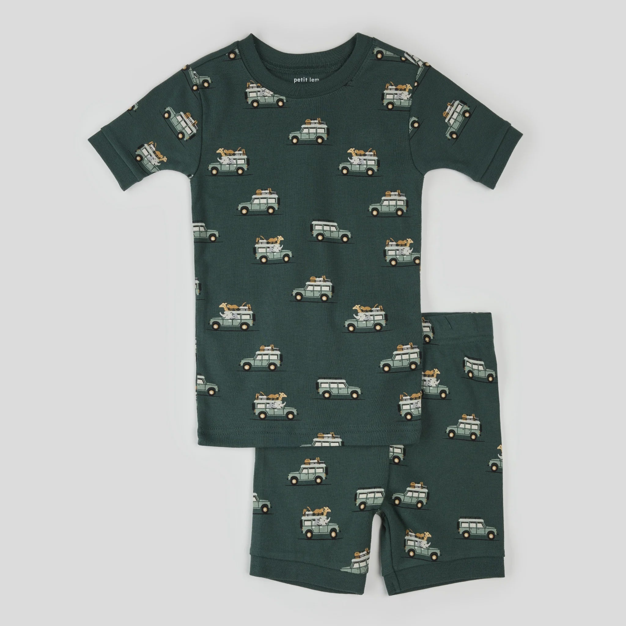 Petit Lem - Short Sleeve Top & Short PJ Set - Turquoise Safari Trucks